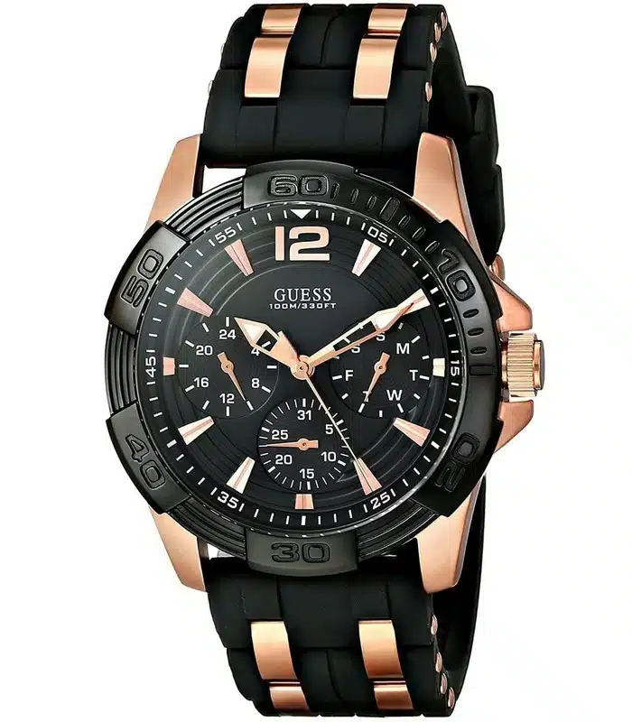 Montre pour Homme de la Marque : Guess – Référence : W0366G3 – Fonctionnalités : Chronographe – Mouvement : Quartz – Matière du boîtier : Acier inoxydable – Diamètre du boîtier : 44 mm – Matière du bracelet : Silicone – Largeur du bracelet : 22 mm – Type de verre : Minéral – Garantie : 2 ans Livré avec son coffret original, sac et certificat d’authenticité.