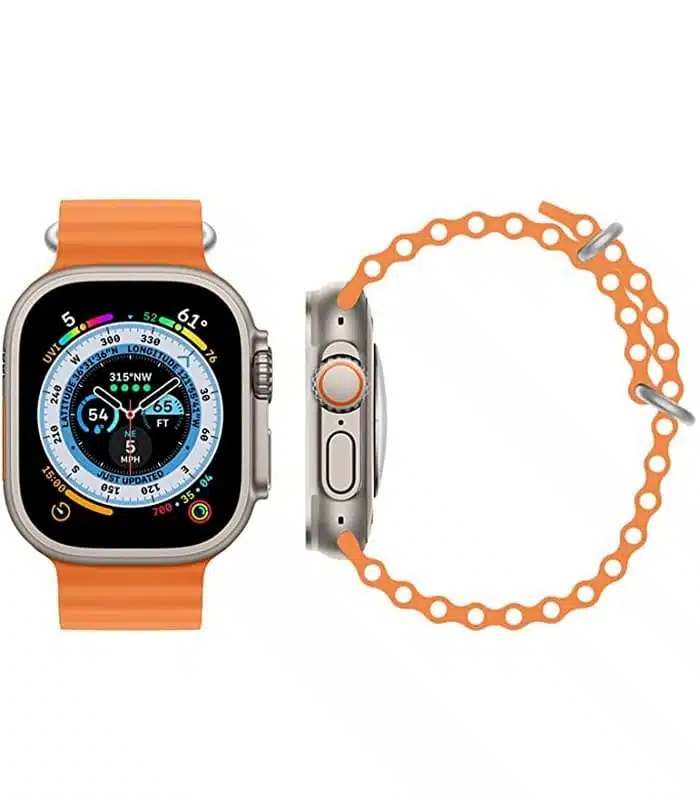 SmartWatch WK8 Ultra Orangé Unisexe– Affichage : Analogique Digital – Ecran : HD tactile – Système d'exploitation : Android ou iOS – Méthode de charge : Sans Fil – Temps d'utilisation : 3 à 5 jours – Matière du bracelet : Silicone + Tissu – Technologie d'affichage : LED – Garantie : 6 mois Vendu avec : Deux Ceintures, Câble de chargement et Manuel l'utilisateur