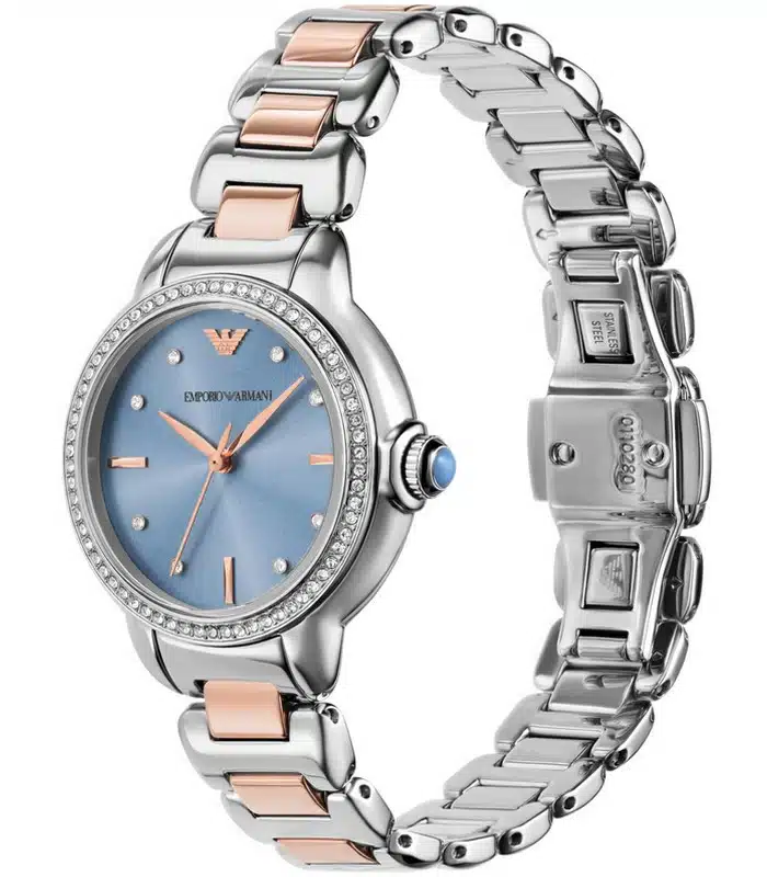 Montre pour Femme de la Marque : Emporio Armani – Référence : AR11597 – Fonctionnalités : Analogique – Mouvement : Quartz – Matière du boîtier : Acier inoxydable – Diamètre du boîtier : 32 mm – Matière du bracelet : Acier inoxydable – Largeur du bracelet : 12 mm – Type de verre : Minéral – Garantie : 2 ans Livré avec son coffret original, sac et certificat d’authenticité.