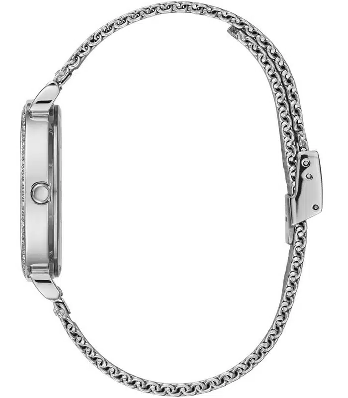 Montre pour Femme de la Marque : Guess – Référence : W1289L1 – Fonctionnalités : Analogique – Mouvement : Quartz – Matière du boîtier : Acier inoxydable – Diamètre du boîtier : 34 mm – Matière du bracelet : Acier inoxydable – Largeur du bracelet : 14 mm – Type de verre : Minéral – Garantie : 2 ans Livré avec son coffret original, sac et certificat d’authenticité.