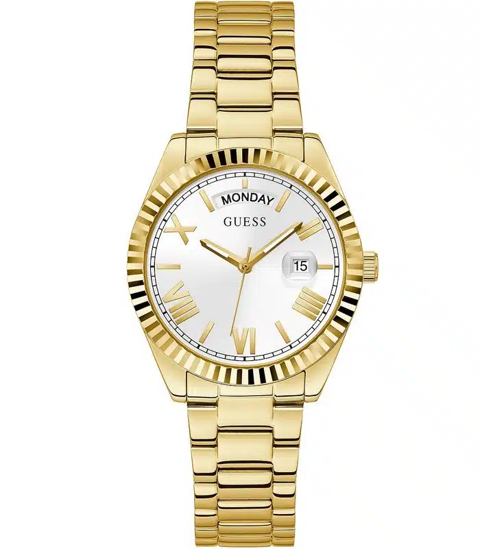 Montre pour Femme de la Marque : Guess – Référence : GW0308L2 – Fonctionnalités : Analogique – Mouvement : Quartz – Matière du boîtier : Acier inoxydable – Diamètre du boîtier : 36 mm – Matière du bracelet : Acier inoxydable – Largeur du bracelet : 20 mm – Type de verre : Minéral – Garantie : 2 ans Livré avec son coffret original, sac et certificat d’authenticité.