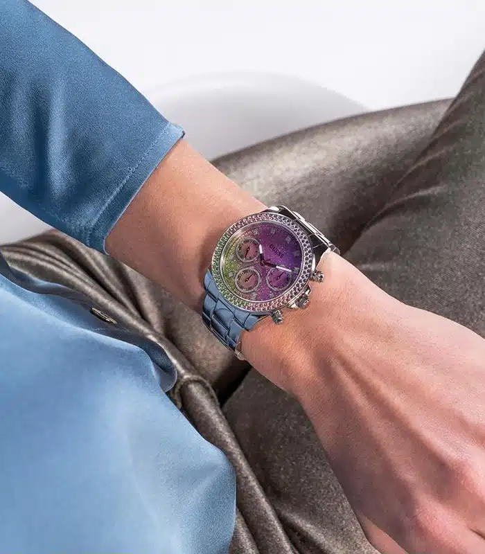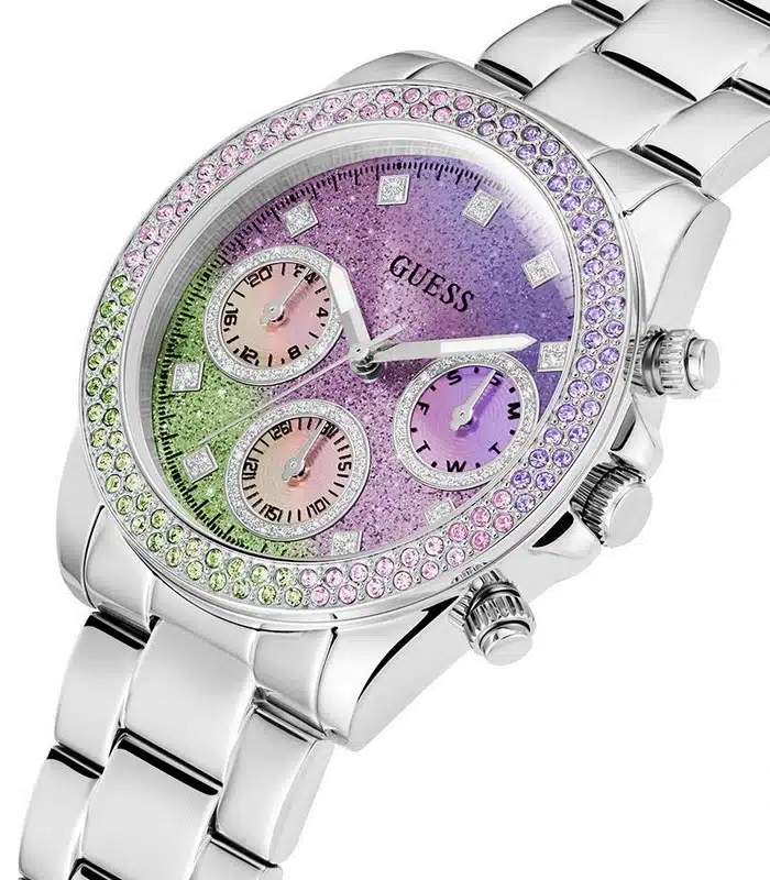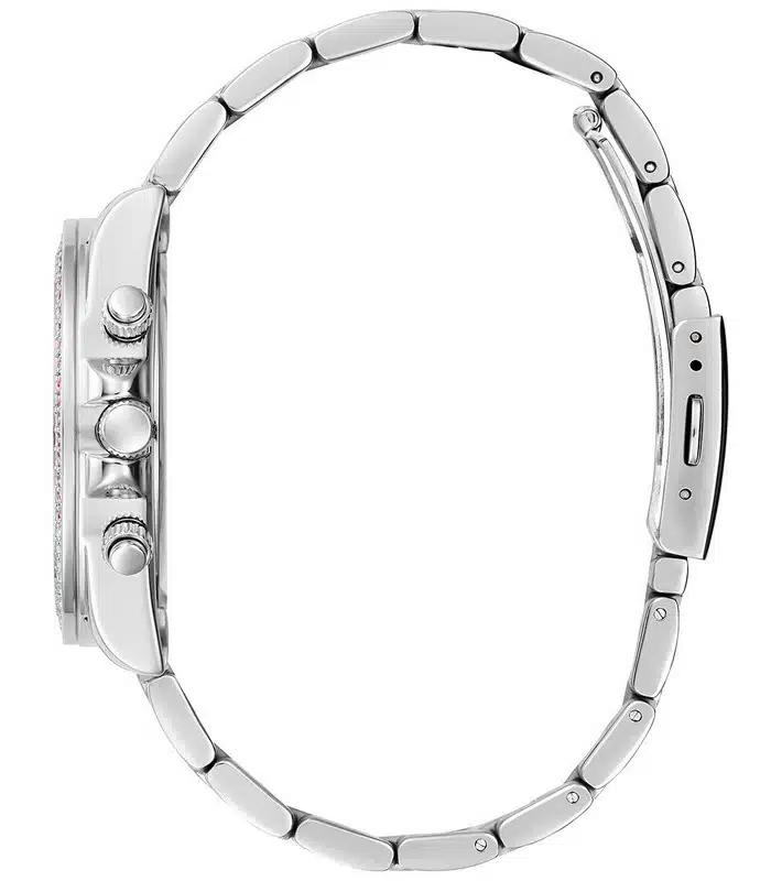 Montre pour Femme de la Marque : Guess – Référence : GW0483L1 – Fonctionnalités : Chronographe – Mouvement : Quartz – Matière du boîtier : Acier inoxydable – Diamètre du boîtier : 38 mm – Matière du bracelet : Acier inoxydable – Largeur du bracelet : 20 mm – Type de verre : Minéral – Garantie : 2 ans Livré avec son coffret original, sac et certificat d’authenticité.