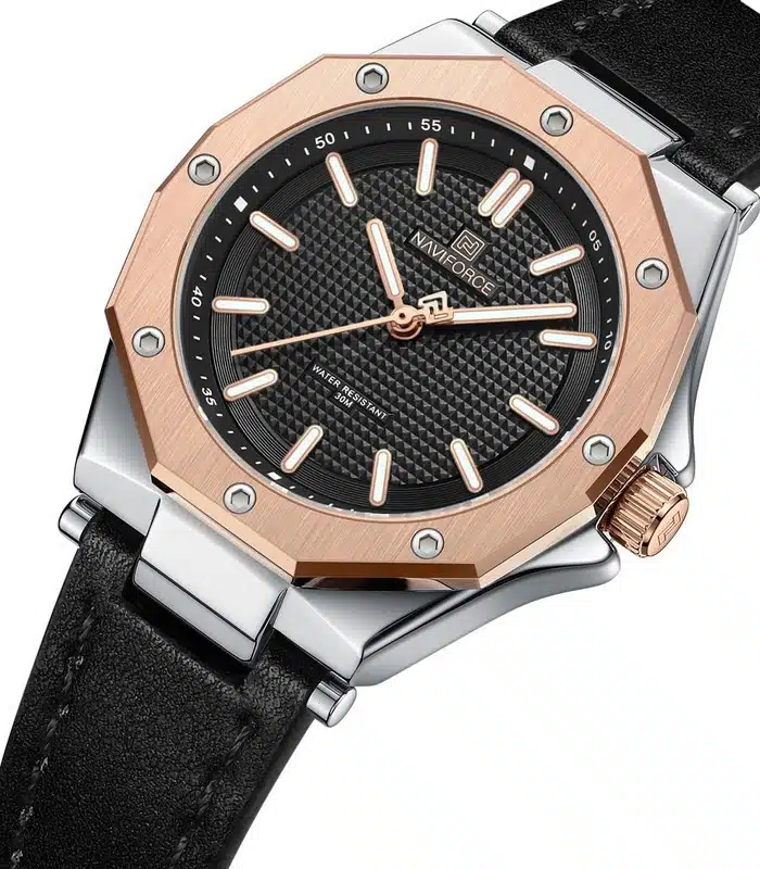 Montre pour Femme de la Marque : Naviforce – Référence : NF5026 Noir – Fonctionnalités : Analogique – Mouvement : Quartz – Matière du boîtier : Acier inoxydable – Diamètre du boîtier : 35 mm – Matière du bracelet : Cuir – Largeur du bracelet : 14 mm – Type de verre : Minéral – Garantie : 1 an Livré avec son coffret original et certificat d’authenticité.