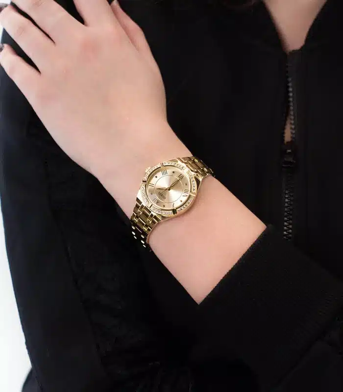 Montre pour Femme de la Marque : Guess – Référence : GW0033L2 – Fonctionnalités : Analogique – Mouvement : Quartz – Matière du boîtier : Acier inoxydable – Diamètre du boîtier : 36 mm – Matière du bracelet : Acier inoxydable – Largeur du bracelet : 18 mm – Type de verre : Minéral – Garantie : 2 ans Livré avec son coffret original, sac et certificat d’authenticité.