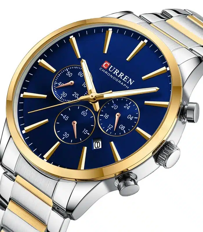 Montre pour Homme de la Marque : Curren – Référence : 8435 Fond Bleu – Fonctionnalités : Chronographe – Mouvement : Quartz – Matière du boîtier : Acier inoxydable – Diamètre du boîtier : 45 mm – Matière du bracelet : Acier inoxydable – Largeur du bracelet : 22 mm – Type de verre : Minéral – Garantie : 1 an Livré avec son coffret original et certificat d’authenticité.