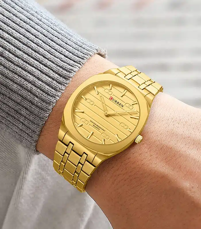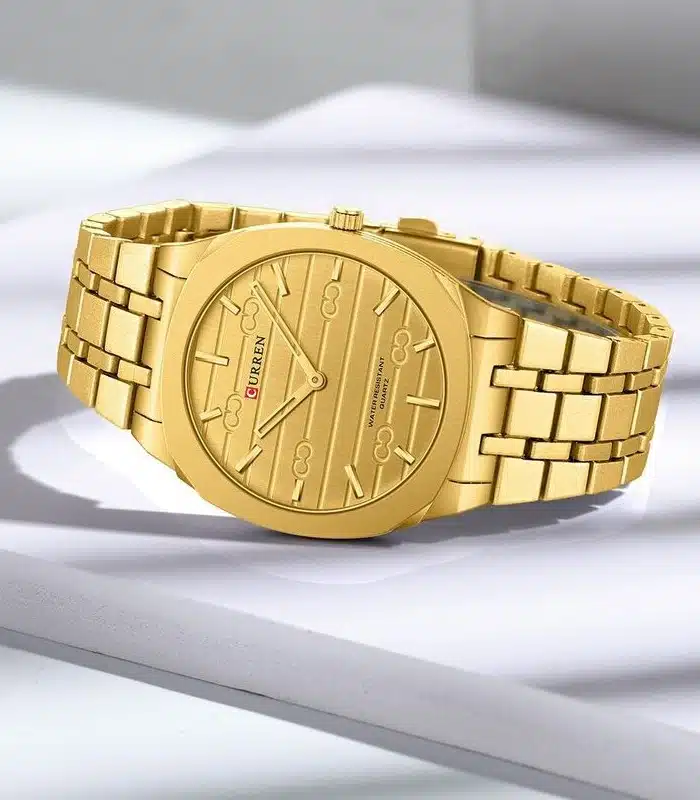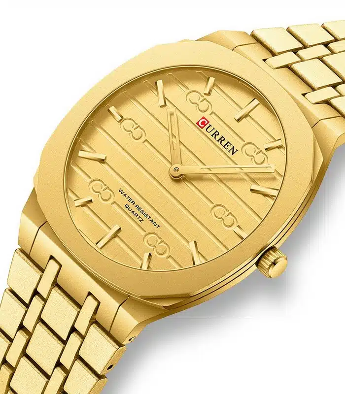 Montre pour Homme de la Marque : Curren – Référence : 8444 Doré – Fonctionnalités : Analogique – Mouvement : Quartz – Matière du boîtier : Acier inoxydable – Diamètre du boîtier : 38 mm – Matière du bracelet : Acier inoxydable – Largeur du bracelet : 18 mm – Type de verre : Minéral – Garantie : 1 an Livré avec son coffret original et certificat d’authenticité.
