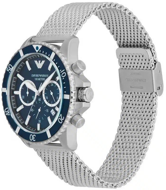 Montre pour Homme de la Marque : Emporio Armani – Référence : AR11587 – Fonctionnalités : Chronographe – Mouvement : Quartz – Matière du boîtier : Acier inoxydable – Diamètre du boîtier : 46 mm – Matière du bracelet : Acier inoxydable – Largeur du bracelet : 24 mm – Type de verre : Minéral – Garantie : 2 ans Livré avec son coffret original, sac et certificat d’authenticité.