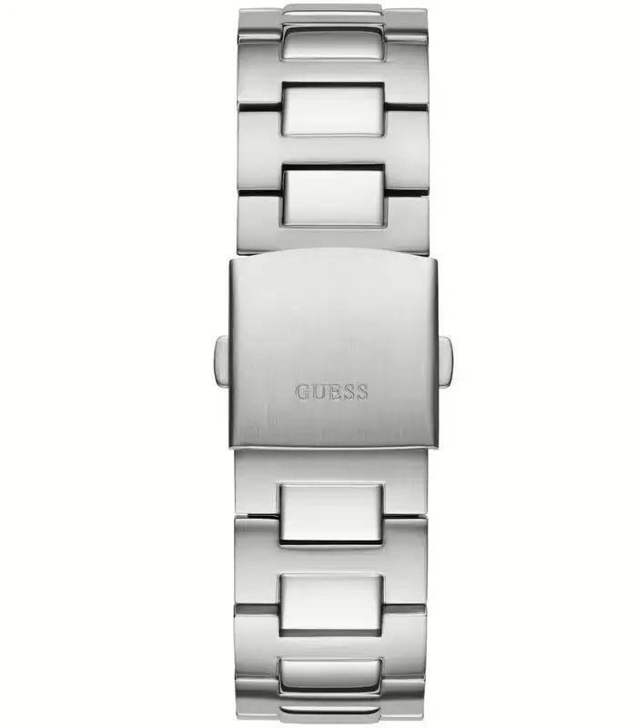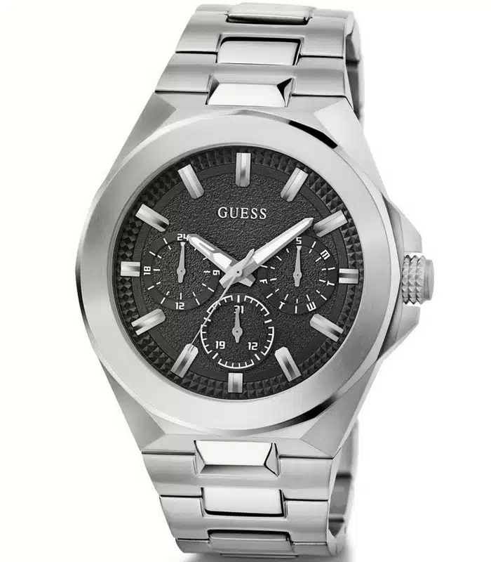 Montre pour Homme de la Marque : Guess – Référence : GW0798G1 – Fonctionnalités : Chronographe – Mouvement : Quartz – Matière du boîtier : Acier inoxydable – Diamètre du boîtier : 46 mm – Matière du bracelet : Acier inoxydable – Largeur du bracelet : 27 mm – Type de verre : Minéral – Garantie : 2 ans Livré avec son coffret original, sac et certificat d’authenticité.