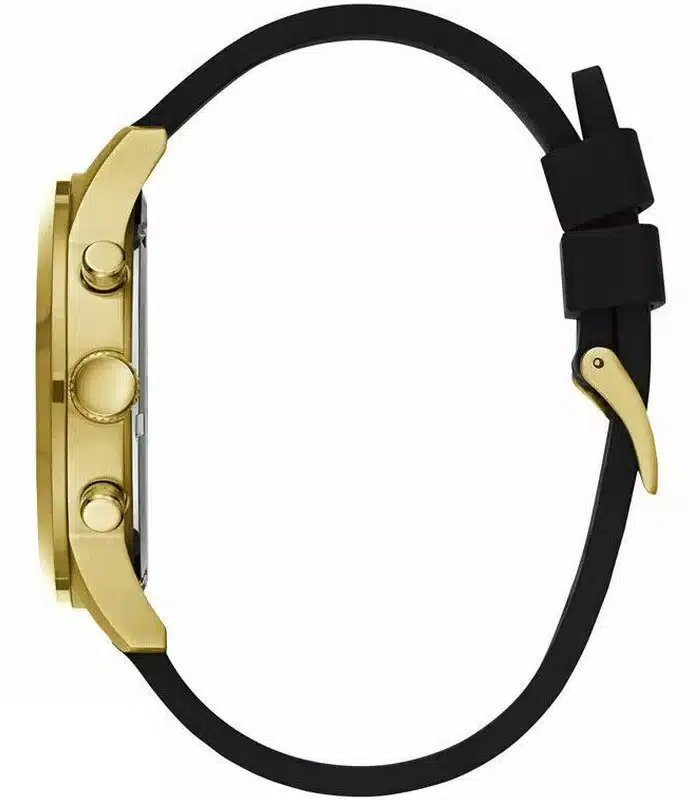 Montre pour Homme de la Marque : Guess – Référence : W1055G4 – Fonctionnalités : Chronographe – Mouvement : Quartz – Matière du boîtier : Acier inoxydable – Diamètre du boîtier : 45 mm – Matière du bracelet : Silicone – Largeur du bracelet : 22 mm – Type de verre : Minéral – Garantie : 2 ans Livré avec son coffret original, sac et certificat d’authenticité.