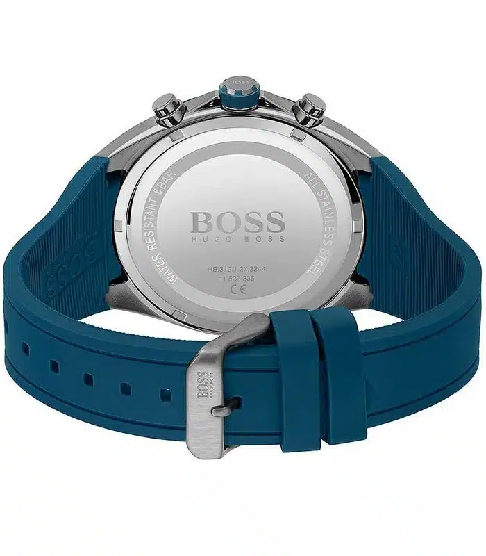 Montre pour Homme de la Marque : Hugo Boss – Référence : HB1513856 – Fonctionnalités : Chronographe – Mouvement : Quartz – Matière du boîtier : Acier inoxydable – Diamètre du boîtier : 46 mm – Matière du bracelet : Silicone – Largeur du bracelet : 22 mm – Type de verre : Minéral – Garantie : 2 ans Livré avec son coffret original, sac et certificat d’authenticité.