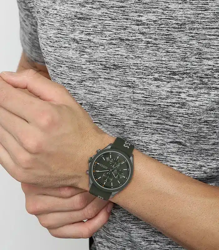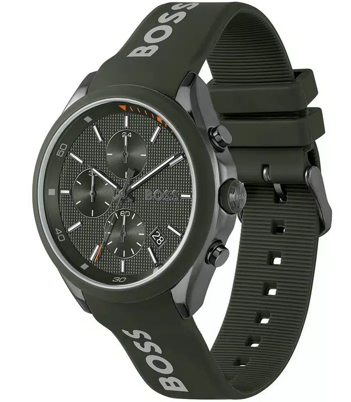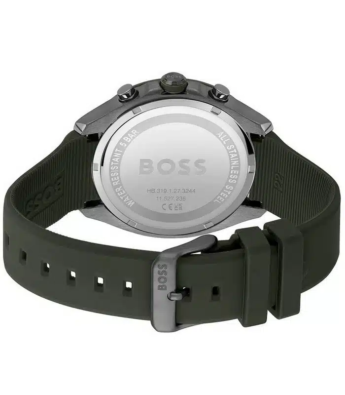 Montre pour Homme de la Marque : Hugo Boss – Référence : HB1514060 – Fonctionnalités : Chronographe – Mouvement : Quartz – Matière du boîtier : Acier inoxydable – Diamètre du boîtier : 44 mm – Matière du bracelet : Silicone – Largeur du bracelet : 22 mm – Type de verre : Minéral – Garantie : 2 ans Livré avec son coffret original, sac et certificat d’authenticité.