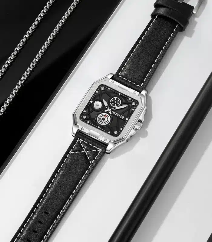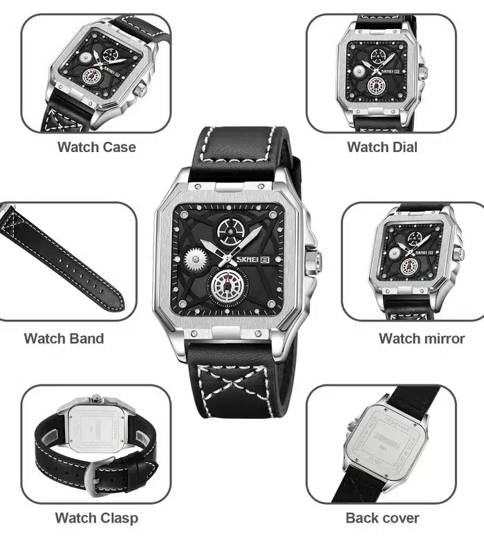 Montre pour Homme de la Marque : Skmei – Référence : 9330 Fond Noir – Fonctionnalités : Chronographe – Mouvement : Quartz – Matière du boîtier : Acier inoxydable – Diamètre du boîtier : 42 mm – Matière du bracelet : Cuir – Largeur du bracelet : 20 mm – Type de verre : Minéral – Garantie : 1 an Livré avec son coffret original et certificat d’authenticité.